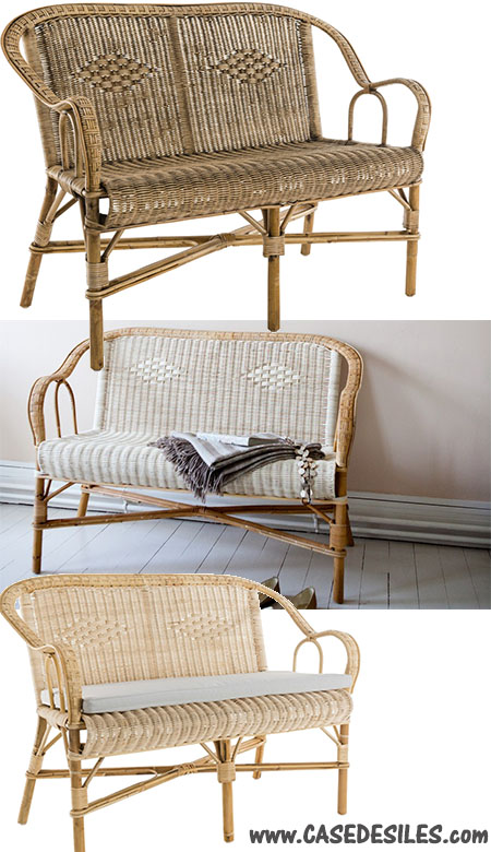 Ce canapé rotin patiné vieilli peut tout aussi bien être utilisé seul et fera quand même sensation dans votre entrée ou un jardin d’hiver.