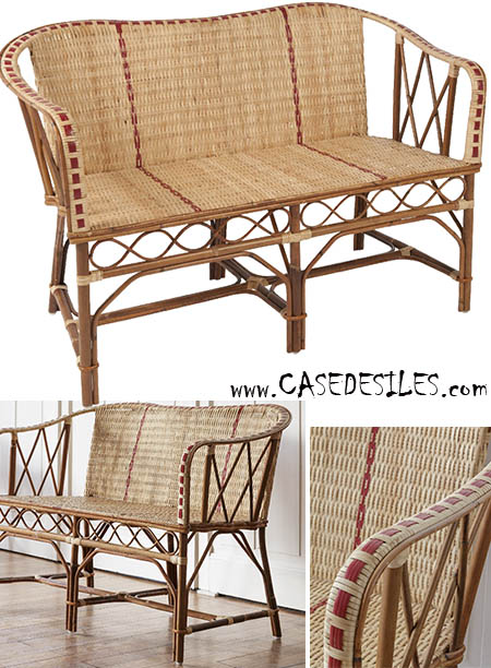 Dimensions hors tout de la banquette rotin naturel : ht.80 x larg.120 x long.61 – Ht. assise à 43cm.