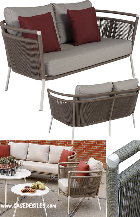 Canapé de jardin en corde tressée sur structure en aluminium 2 places avec coussins : 654-2