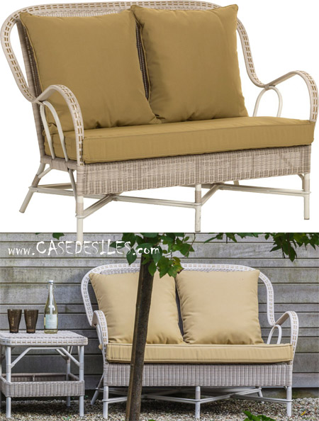 Canapé rotin outdoor à 2 places avec coussins couleur ocre : CDI-1604-COUSSIN553