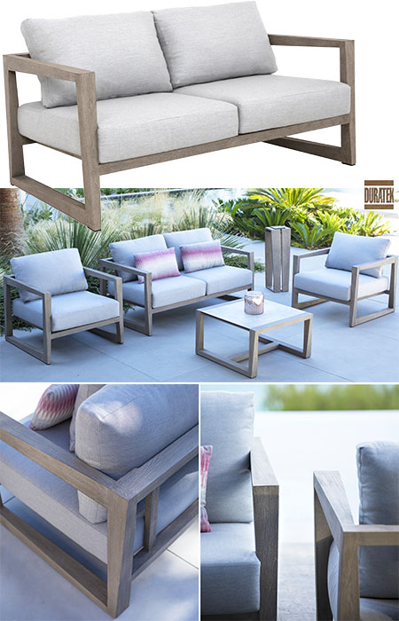 Notre canapé de jardin en teck dispose d’une structure et finition durateck : une protection longue durée de votre teck en extérieur !