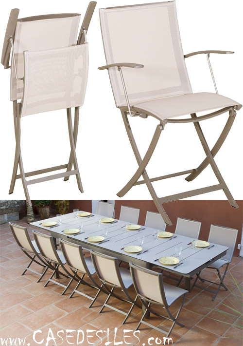 – Fauteuil alu et toile tendue résistant aux UV et intempéries.