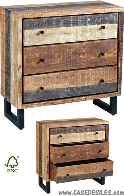 Commode bois et métal finition trait de scie à 3 tiroirs : 3450
