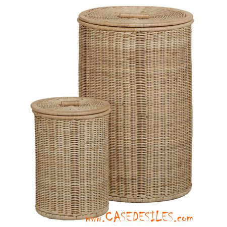 Corbeilles à linge en moelle de rotin naturelle de forme ronde : CDIB10N