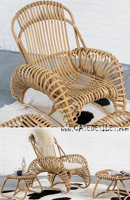 Un fauteuil en rotin vintage revisité mais tout aussi confortable qu’il peut être utilisé sans coussins.
