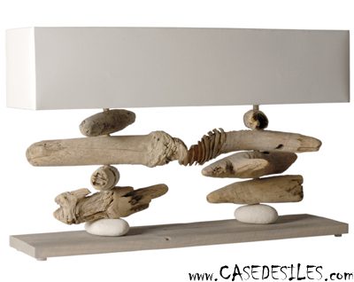Cette lampe galet bois flotté est totalement fabriquée de façon artisanale en France.