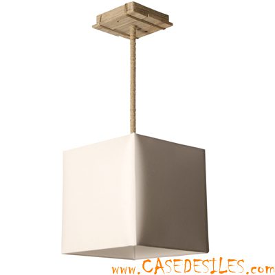 Dimensions de l’abat jour de la lampe suspension bois et cordage : 20 x 20cm.
