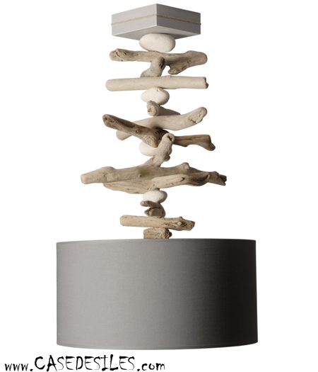 Lampe à suspension en galet et bois flotté en empilement Cendre :