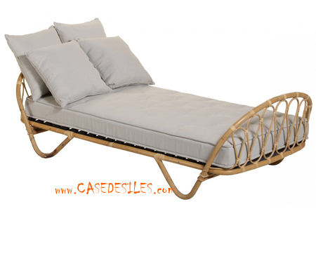Les coussins du lit en rotin sont aussi déhoussables et garnis de ouate de polyesther.