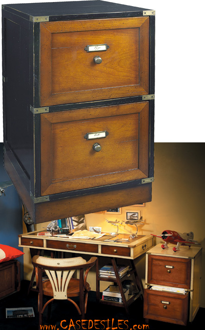 Meuble d’archives de bureau bloc dossiers au style marine est destiné à procurer du rangement supplémentaires et accompagner nos bureaux marines (voir nos bureaux en bois et laiton marines).