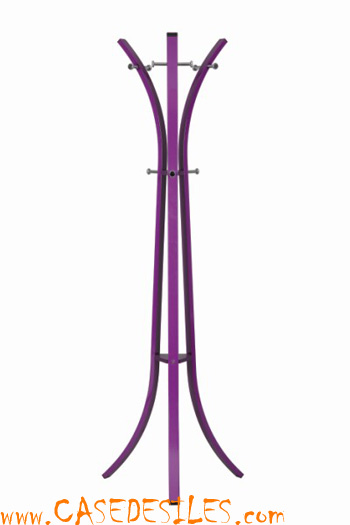 Porte manteaux en tube acier laqué violet avec patère chromé dans un style très contemporain et moderne idéal pour suspendre manteaux, vestes, pullovers, écharpes et chapeaux dans votre entrée.