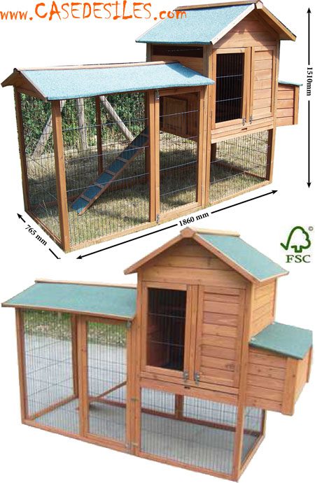 Caractéristiques du poulailler en bois bi-corps :