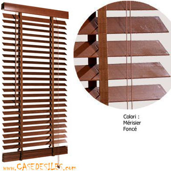 Store bois d’intérieur vénitien finition merisier foncé à lattes de 50mm :