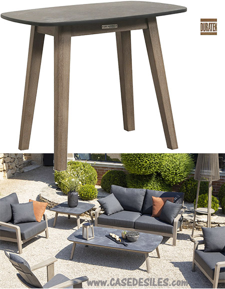 En outre, cette table basse vous offre son savant mélange de matières entre le teck et un plateau en HPL (stratifié haute pression) imitant le l’ardoise tout en étant très résistant aux rayures, aux UV, aux intempéries et ne nécessite pas d’entretien (nettoyage à l’eau savonneuse).