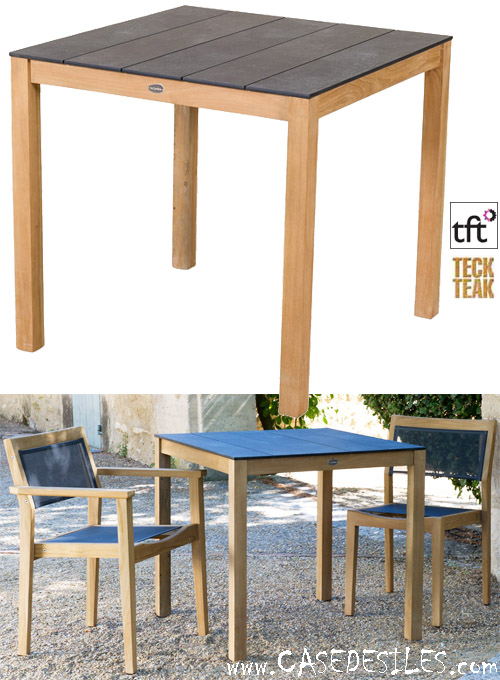 Table en teck carrée avec plateau en stratifié haute pression HPL à lattes finition granit : Tekura TAV9017